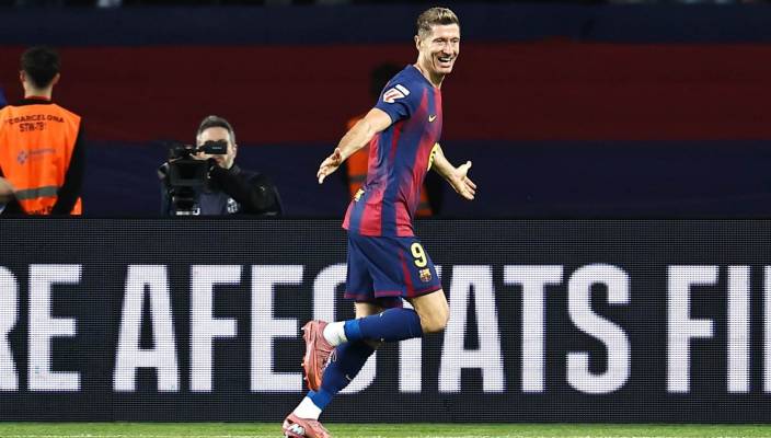 Нападающий «Барселоны» Роберт Левандовски оформил дубль в матче 1/8 финала Лиги чемпионов против «Ньюкасла»
